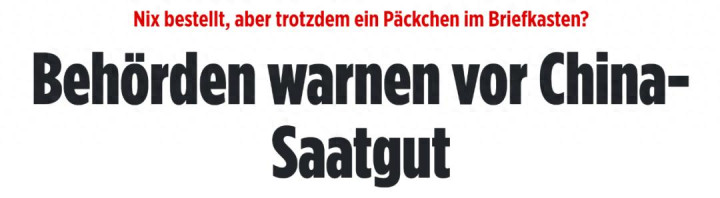 JKI发言人证实,这种情况正在增多。由于缺少植物检疫证书,这些货物被退回。包裹里主要是未经订购的种子。据当局说,这些包裹之所以引起注意,是因为其经常通过错误申报为“耳饰”或“贺卡”的方式试图蒙混过关。