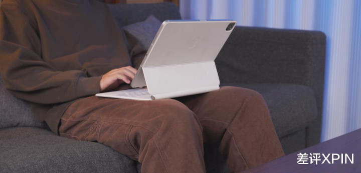 苹果妙控键盘的好处是结构牢靠,放腿上不晃,但坏处是平板 + 键盘的重量都超过 MacBook 了。。。