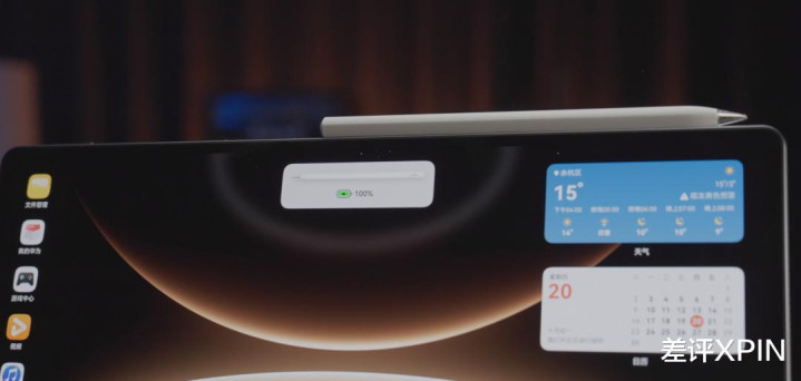 然而,华为不但预留了槽,它这个槽甚至还能给笔充电,而且平板边框顶上还是能给笔充电。。。